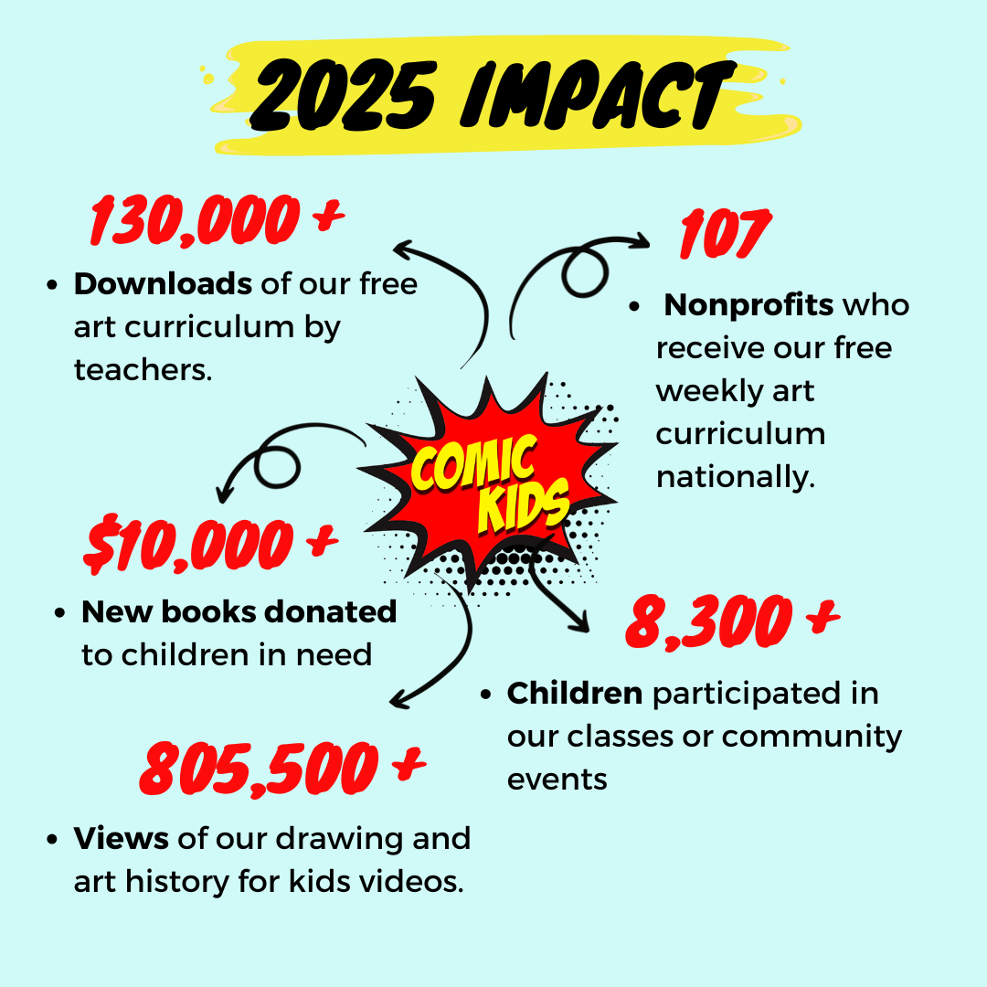 Comic Kids is a resource for teachers and afterschool programs to bring art classes, supplies, curriculum, and art books to their kids for free.